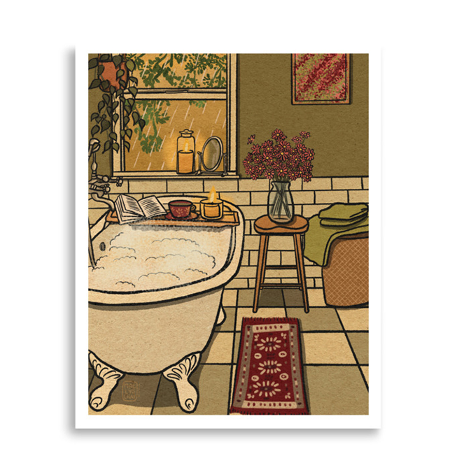 Cosy Bath and Rain Giclée Print